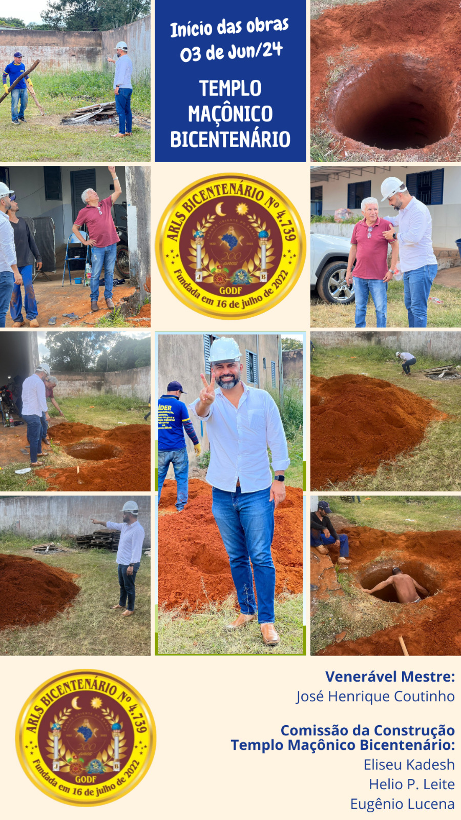A construção do Templo da Loja Bicentenário 4739, cuja pedra fundamental foi então lançada, será coordenada por uma comissão designada pelo Venerável Mestre Henrique Coutinho, constituida dos irmãos Eliseu Kadesh, como coordenador, Helio P. Leite e Eugêncio Lucena, como membros.